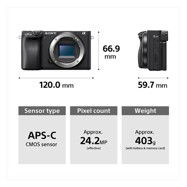 • 24.2MP, EXMOR CMOS sensor with outstanding light sensitivity;11 FPS continuous shooting with AF/AE