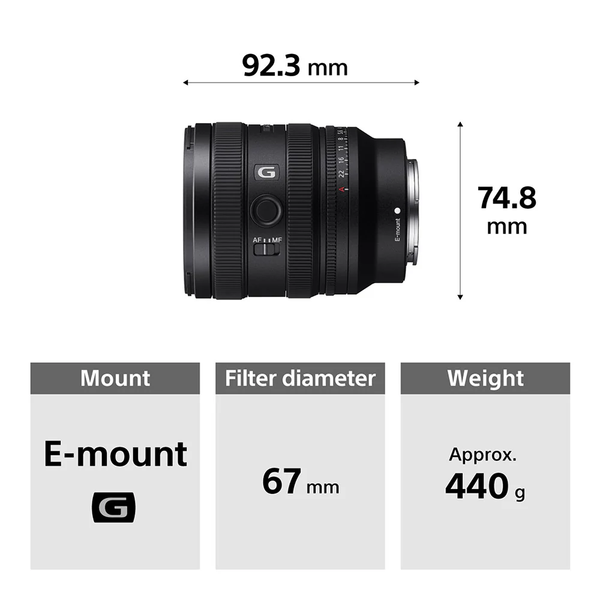 This compact full-frame F2.8 standard zoom lens is an excellent match for α-series bodies, with advanced lens technology ensuring that body performance is fully realized. 24–50 mm is an ideal range for everyday use. Outstanding G LensTM resolution and bokeh are available at all focal lengths, and precision AF means fast, sharp focus. Great for shooting stills and movies anywhere