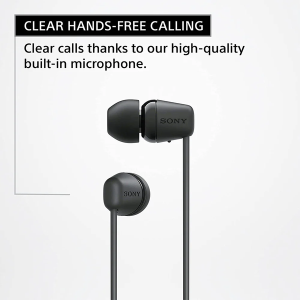 The WI-C100 headphones are easy to operate, with buttons to play and pause, skip tracks, adjust the volume, and receive calls. For convenience, the buttons have been redesigned, with a more pronounced shape making them easier to press.