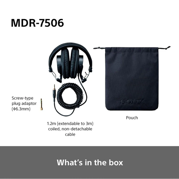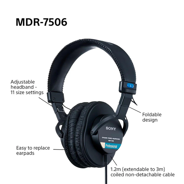 The MDR-7506 is an extremely high-quality reference headphone. Lightweight and engineered for maximum comfort over extended periods of wear, it's ideal for use in broadcast and studio environments. A 40 mm PET diaphragm and neodymium magnet provide performance exceeding the requirements of digital sources, such as CD, MD and DAT.
